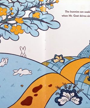 Six frolicking bunnies, two busy goats, and a very handy bear live harmoniously – though not without mishap – in this picture book charmer. What do the bunnies do when Mr. Goat drives by on his tractor and accidentally splashes them all over with mud? They hop over to Bear, who always knows just how to help – in this case, with the delicate cycle and a refreshing line dry!