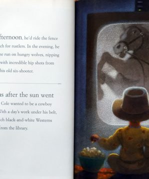 The cowboy life isn’t easy. But Cole knows it’s the only life for him. In what other profession does a hard day’s work lead directly to campfires and log pillows? In this story of Western dreaming, a boy and his faithful dog leave indoor comforts behind for their first sleep-out under the stars. But when the sun goes down, how’s a wide-eyed cowpoke to handle his first run-in with bandits, bears, and worse?