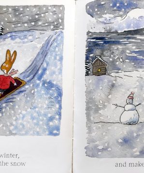 A whimsical study of the seasons, this tale follows the high-spirited bunny Maybelle as she experiences the soothing aspects of nature and outdoor play and later eases into sleep, dreaming of her adventures at the end of the day. Whether she’s scampering in the fireweed, sloshing through the melting snow and ice, searching for special rocks at the beach, or visiting the Two Sisters Bakery, she always has time to say “hi” to her neighbors.