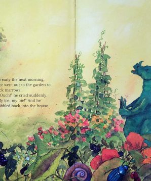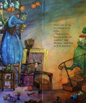 It’s harvest time, and Merlina the little sorceress and her friend Igor the dragon are busily gathering fruit and vegetables from their garden. When Igor stands on a sharp thorn, Merlina has to find the right spell to make his toe better. Several not-so-magic spells later and the thorn is still there, and poor Igor is still in pain!