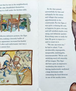 Here comes a picture book about a really rotten, extraordinarily large ogre and the friendly young lady who does her best to help him.