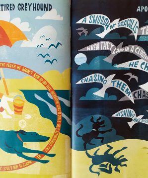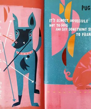 This book is a collection of poems about dogs. The art and text are completely entwined. The art is comprised of brightly colored graphics; the words are part of the picture. A fun read, especially for dog lovers!