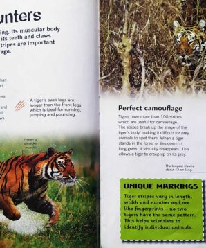 Tigers are the largest cats on Earth. Their orange fur and dark stripes make them easy to recognise. These powerful hunters have large, sharp teeth and claws. It is no surprise that they are called the king of the cats. Read more about this amazing and fascinating animal in this exciting book.
