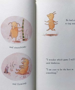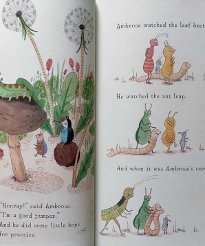 Three cheers for Ambrose! It’s the day of the Great Insect Games and Ambrose is desperate to win a gold medal – he’s been practicing very hard. But when the grasshopper jumps further and the pond skater skates faster, it looks as though Ambrose will never win anything. But with a little determination and the help of his friends, Ambrose soon discovers that everyone is good at something.