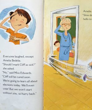 Amelia Bedelia is sure she will love everything about school election day. The fun choices. Having a voice. Running for office. Working together. Voting. Amelia Bedelia can’t wait. What could be better? Hooray for school! Hooray for elections! Hooray for voting!