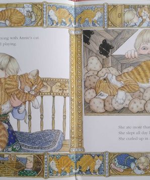 When Annie’s cat disappears, she attempts friendship with a variety of unsuitable woodland animals. The borders of the pages foretell the emergence of spring and the birth of kittens.