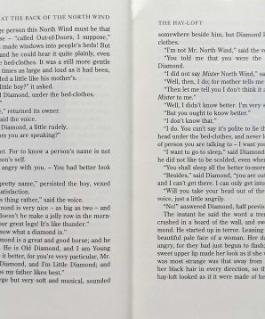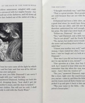 This is the magical story of Diamond, the son of a poor coachman, who is swept away by the North Wind – a radiant, maternal spirit with long, flowing hair – and whose life is transformed by a brief glimpse of the beautiful country, at the back of the north wind. It combines a Dickensian regard for the working class of mid 19th century England with the invention of an ethereal landscape.
