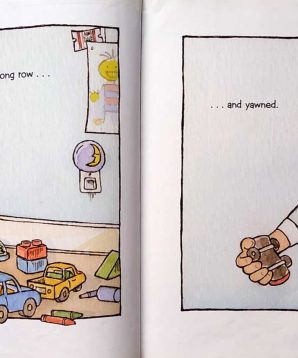 A little boy does not want to go to bed and throws a tantrum. He grows horns and a tail until his parents tame the little bedtime monster.