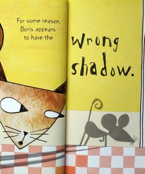 After a delightful catnap and dreams of swimming in a bowl of milk, Boris the cat has a feeling that things are not quite as they should be. Something is strange. Boris has woken up with the wrong shadow; in fact, it’s the shadow of a small mouse!