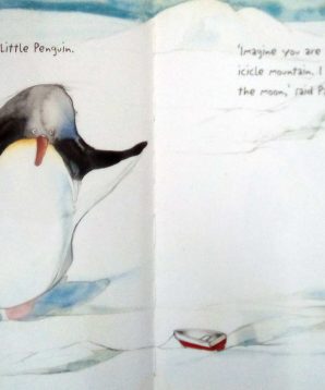 When Papa Penguin goes fishing, Little Penguin must stay at home. At first, he is sad but soon he realises that he must be brave because there are many imaginary adventures to be had. There are icicle mountains to guard, buried treasures to find and rough seas to sail, but at the end of the day, as the sun starts to set, Papa returns home to his Little Penguin. This is an endearing story about love, separation and bravery.