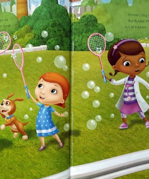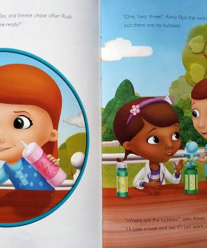 Doc loves popping bubbles with her friends Emmie and Alma, but when their toy Bubble Monkey runs out of bubble soap, there are no bubbles to pop. Alma fills her up again, but something’s terribly wrong. Bubble Monkey still can’t blow bubbles. It’s time for Bubble Monkey’s check up!