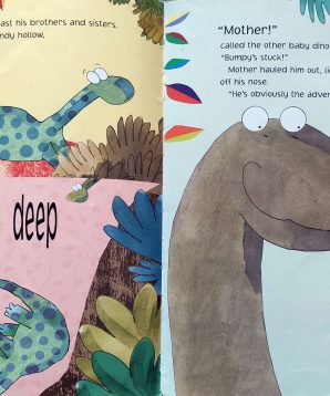 Bumposaurus the baby dinosaur is so short-sighted he can’t even find his way out of his egg, and life certainly doesn’t get any easier once he has finally hatched. This is an exuberant and hilarious story, examining the question of ‘difference’ in a light-hearted and sympathetic way. With a hugely endearing main character and comical illustration, this is a fantastic laugh-out-loud picture book.