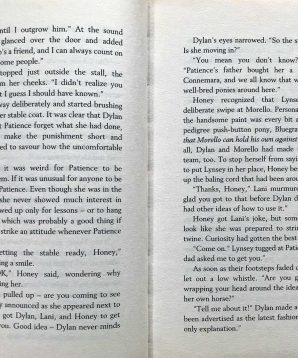 As the girls of Chestnut Hill become closer, they learn more about one another’s lives before boarding school. But Honey has a secret too close to her heart to share. She hasn’t told anyone yet that she has a twin, so how can she bring him up now, when he’s so sick? Then, when Patience’s new pony, Minuet, is injured, Honey finds herself wanting to nurse the mare back to health. She pours all of her emotion into caring for the pony, even though she knows Minuet will never be her own. No one understands her dedication to Minuet, least of all Honey herself.