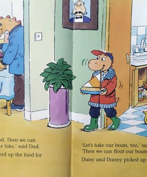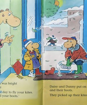 One windy day, Daisy the Dinosaur goes to the hill with Mum, Dad and Danny. Daisy and Danny fly their new kites. Then Daisy sees a big yellow kite, but when she flies it, she goes high in the sky too.
