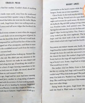 Fourteen year old Angel wakes up one morning at her desert trailer home to discover her mother has been murdered by a lowlife named Scotty, who has vanished. Angel has no water, no weapon, but she knows that Scotty, an expert tracker and hunter, will surface soon in order to eliminate her as a witness. She has to run, to disappear, if she is to survive and tell the world what happened. Her flight takes her through a harsh landscape to places she never expected to be, forcing her to trust others for the first time and strengthening her in ways she doesn’t even anticipate… until it’s time to take a stand.