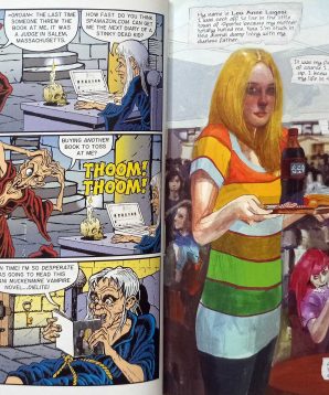 Tales From The Crypt offers its snarky spoofs of Diary of a Wimpy Kid and Twilight. The cover-featured “Stinky Dead Kid” stars in two tales, the first of which follows his transformation from a wimpy kid to a stinky zombie, while “Dielite” features the lovelorn vampire Deadward, who may be the most self-centered bloodsucker alive!