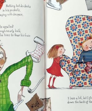 When Dad loses his car keys, little Mary suggests they might be down the back of the chair. Join in the fun as Dad begins the search, finding everything from a hairy string to a diamond ring – and much, much more! Could the solution to all the family’s problems be down the back of the chair?