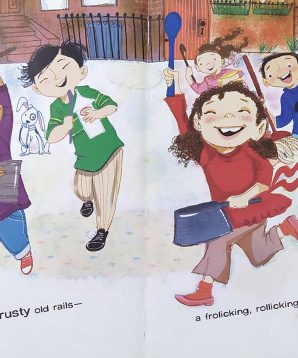 What begins with one boy’s beat on a kettle soon spreads to pots and pans and cartons and cans all across the neighborhood. When everyone joins in, together they create the catchy, driving tempo of a bright, hot DRUM CITY!