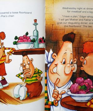 Mother has one unbreakable rule: “No dessert until you finish your dinner.” But how can Edgar, Allan, and Poe possibly clear their plates when there are Brussels sprouts to be swallowed, liver to be chewed and, worst of all, beets to be bitten? There must be a way to get rid of dinner without having to gobble up this foul food. Perhaps the loose floorboard under Poe’s chair is the answer! This clever twist on Edgar Allan Poe’s The Beating of the Tell-Tale Heart will resonate with anyone who has ever wished that certain foods could just disappear.