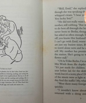 It’s Emil’s first train ride alone and he’s excited – and a little nervous. On the train, his fellow passengers are impressed with how polite and grown-up Emil is, and the man in the bowler hat offers him some chocolate, but Emil keeps checking his coat pocket, where he’s pinned the money that he is taking to his grandmother. Soon, though, Emil finds himself getting sleepy… and the next thing he knows, the man in the bowler hat is gone – and so is the money! With the help of some new friends Emil becomes a detective and tracks the thief through the city.