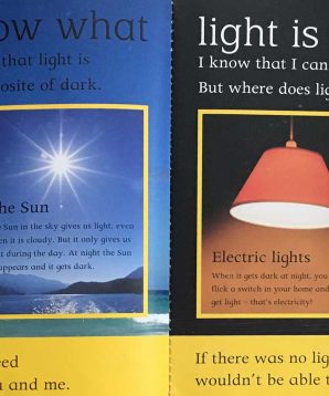 Introduces the concept of light, covering what light is, sunlight, shadows, good and bad light, how our eyes take in light, light sources of the past, electric light, religious festivals involving light, and everyday light.