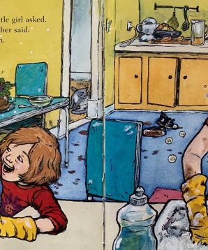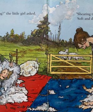 Day to day, season to season, Mom tends the family’s small flock of sheep, and then shears and washes, cards and dyes, spins and knits. Every step of the way, her little girl watches and asks, “What are you doing?” As playful as it is informative, this rambunctious read-aloud features a mother and daughter making a game of their warm and wooly enterprise.