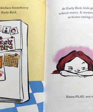 Freckleface Strawberry loves the Early Bird program at school because it means extra time on the playground – except when it rains. Rain means indoor playtime… and facing the school bully Windy Pants Patrick in a bruising game of dodgeball.