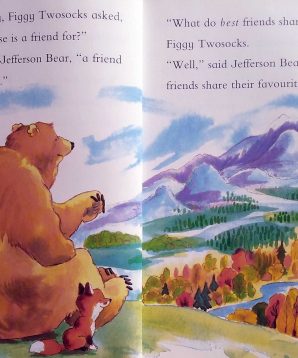 Figgy Twosocks, the fox, is curious. Just what is a friend for? Jefferson Bear helps her find the answer. Together they discover all of the special qualities that make up true friendship – playing, sharing, helping – and forgiving.