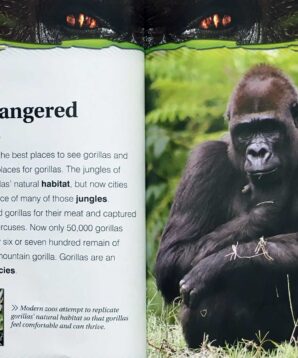 Beautiful photos and text examines the issues endangered gorillas face and how they can be saved.