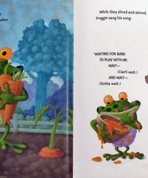 Froggie can’t wait to meet Goose and Gander’s new baby, Gosling! He and Rabbit spend all day preparing: they bake a cake, toss a salad, and find the perfect picnic spot. Froggie picks out his favorite toys and books to share and even makes up a new song. But when Gosling finally arrives, she takes one look at Froggie and… HOOOOOOONK!
