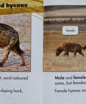 Sách có từ ngữ đơn giản dễ hiểu. Nhiều fun fact (như là con cái là con đầu đàn), có ảnh mấy em bé linh cẩu rất đáng yêu.