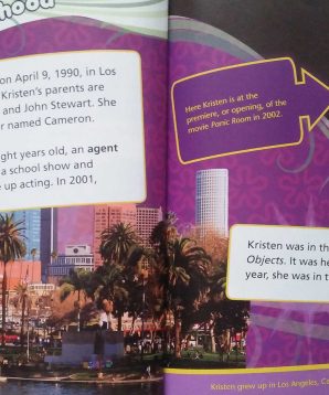 Kristen Stewart is known around the world as Bella Swan from the Twilight movies. Readers will learn how this young star deals with being part of a popular movies series and how she keeps focus on her artistic goals as a young Hollywood star.