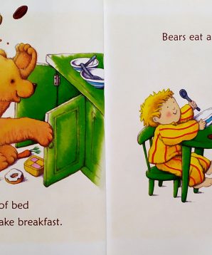 An insight into what bears like best, such as running races, being outside and playing peek-a-boo; and what they don’t like, in particular wearing clothes. The book tells you what to do when your bear gets cross, and it shows you some of the best things about bears.