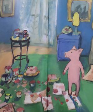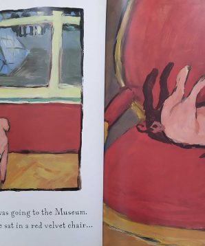 Isabelle is lonesome and bored. When she’s not painting with pink cake and strawberry jam, she goes to the Museum where she gazes at her favorite paintingthe one of the little Angel. Isabelle is smitten. And when the object of her affection comes to life one day, she discovers what it is she’s been longing for all along. Georg Hallensleben’s wonderfully lush illustrations enrich this sweet story about a contemplative pig named Isabelle who finds friends hip and a surefire cure for boredom all in one place.