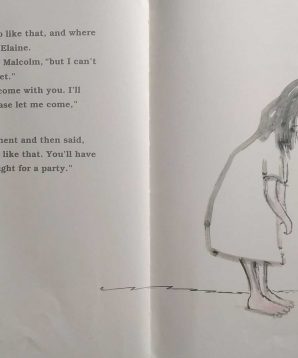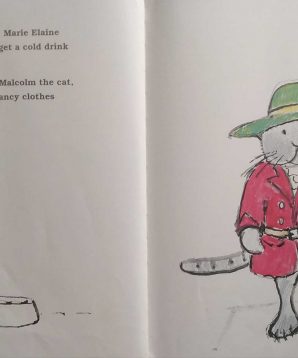 Every night Marie-Elaine’s cat, Malcolm, goes out, and every morning he comes back in and sleeps. “Where do cats go at night?” the girl wonders. So when she sees him at his cat door dressed to the nines, she begs to come along. And amazingly, Malcolm agrees – as long as she puts on her fancy clothes, gets small, and keeps it all a secret.