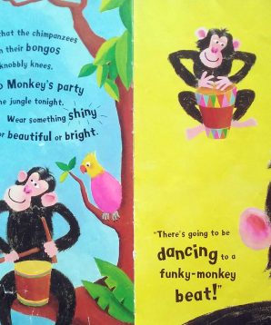 Please come to Monkey’s birthday party. There’s going to be dressing up, dancing and fun for birds and beasts and everyone. Don’t miss the most funky-monkey party of the year!