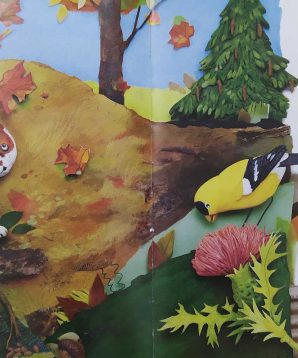 It’s a vibrant autumn day in Kitten’s second adventure, as the ever-curious Kitten explores the woods near her farm and meets the creatures who live there. She finds a chipmunk chewing on a seed, a caterpillar munching on a leaf, a frog catching flies and many more creatures snacking on this and that to ready themselves for winter. While the simple rhyming couplets make this a perfect read-aloud, young readers will enjoy picking out seasonal details in the mixed-media art and searching for and finding Kitten on every page.