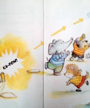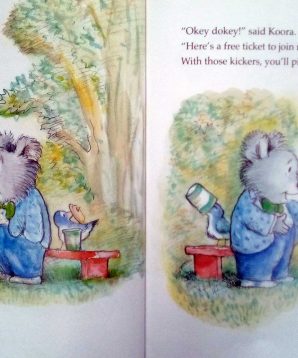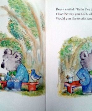 Kylie Kangaroo is taking lessons at Koora Koala’s karate club, and uses a lucky kerchief to learn to break a brick.