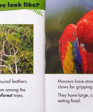 Offering fascinating insight into life in the rain forest, this book follows a parrot through its day as it sleeps, eats, and moves.