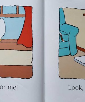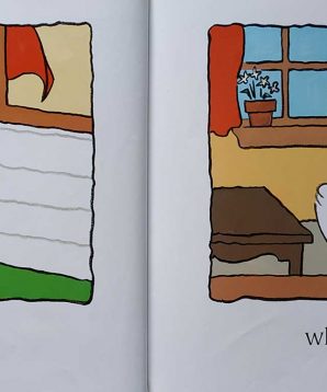 Minerva Louise loves the farmhouse with the red curtains, and one day she decides to explore it from the inside. Children will laugh at her silly antics and love pointing out her mistakes. Stoeke’s bright, streamlined art and offbeat text have put the daffy Minerva Louise on the map – and won her a place in children’s hearts.