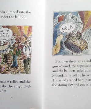 Miranda wins a balloon ride – but the rope snaps and away she goes, over seas, mountains and deserts. She touches down at the Taj Mahal and the Pyramids, flies over the Great Wall of China, visits Japan, almost falls into a river full of crocodiles in Australia, makes some new friends at the Leaning Tower of Pisa – and much more.