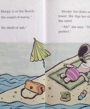 All Moopy wants is a quiet day on the beach. She picked out the perfect spot. But now Ora wants her to move. That pesky sea monster is throwing sand all over. Is Moopy’s day at the beach ruined?