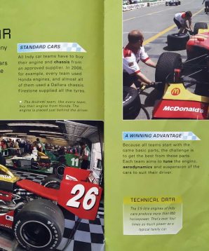 Readers learn the history of Indy Car racing and the how-to of Indy car racing.