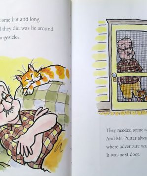 Mr. Putter and his fine cat, Tabby, are itchy. Not because of fleas, but because it is hot, they’re bored, and they’re out of orangesicles. So when their neighbor, Mrs. Teaberry, suggests a sightseeing cruise, they’re excited about an adventure. The boat makes them feel free! Plus they get orangesicles! But when it’s time to go home, there’s a little problem with Mrs. Teaberry’s good dog, Zeke.