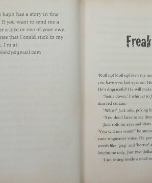 Is your grandpa super angry? Has your Nan ever tried to climb Mt Everest? Have you started your own playground freak show? And have you risked your life to save your pet rat from certain destruction? I have. I’m Tom Weekly and inside the covers of this book you’ll find out about all this and learn the secret of my weirdest body part.