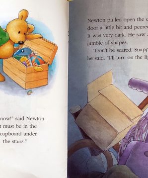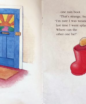 Pitter, patter, plip, plop! It’s raining! “Let’s go splashing,” says Newton to Snappy. But when Newton can find only one rubber boot the search is on, causing the biggest mess ever!