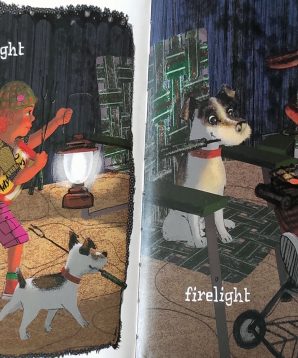 Đối với mình, mình ấn tượng nhất với 2 nguồn sáng: nguồn sáng từ con đom đóm- fireflies light (dù bối cảnh cuộc sống trong sách là phố thị) và nguồn sáng từ đèn pin flash light – cô bé và chú chó nhỏ cùng chơi khi tận dụng nguồn sáng chiếu lên tường, bởi vì chúng rất gần gũi với cuộc sống ngày nhỏ của mình.
