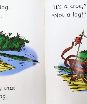Two chimps jump on a log but soon realize that they are floating on a crocodile!