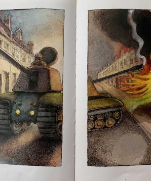 No. No? No! A little boy sets out to deliver a letter, witnessing acts of war on the way. But when he encounters a bully by the post-box, he decides that enough is enough. Almost wordless, but speaking volumes, No! dramatises conflict and its alternatives in a language that is accessible to everyone, young or old: beautiful paintings, executed with profound feeling and an artist’s vision and wisdom.