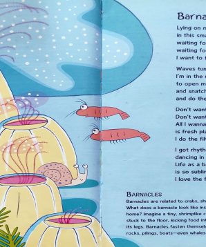 Dive in for a taste of tide pool soup! When the tide goes out, a briny soup is trapped among the rocks. Playful poems introduce readers to ten salty tide-pool creatures, from a self-satisfied anemone that brags about its home to barnacles that perform a rap about their feeding technique.